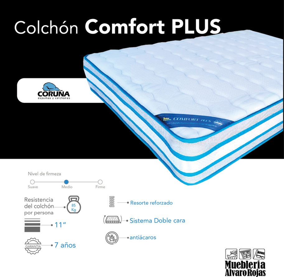 Incluye un colchón ortopédico que brinda firmeza y confort para un descanso verdaderamente reparador. Disponible en tamaño matrimonial o queen.