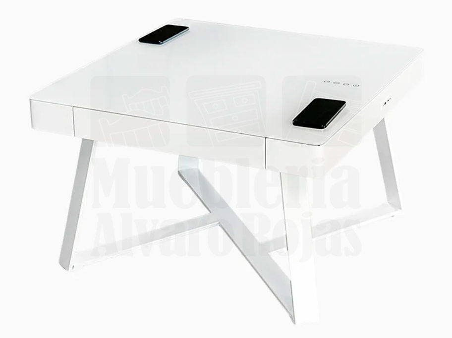 Tu centro de carga y entretenimiento, donde lo necesites. Esta mesa auxiliar portátil es perfecta para cualquier rincón, con carga inalámbrica y altavoz Bluetooth.