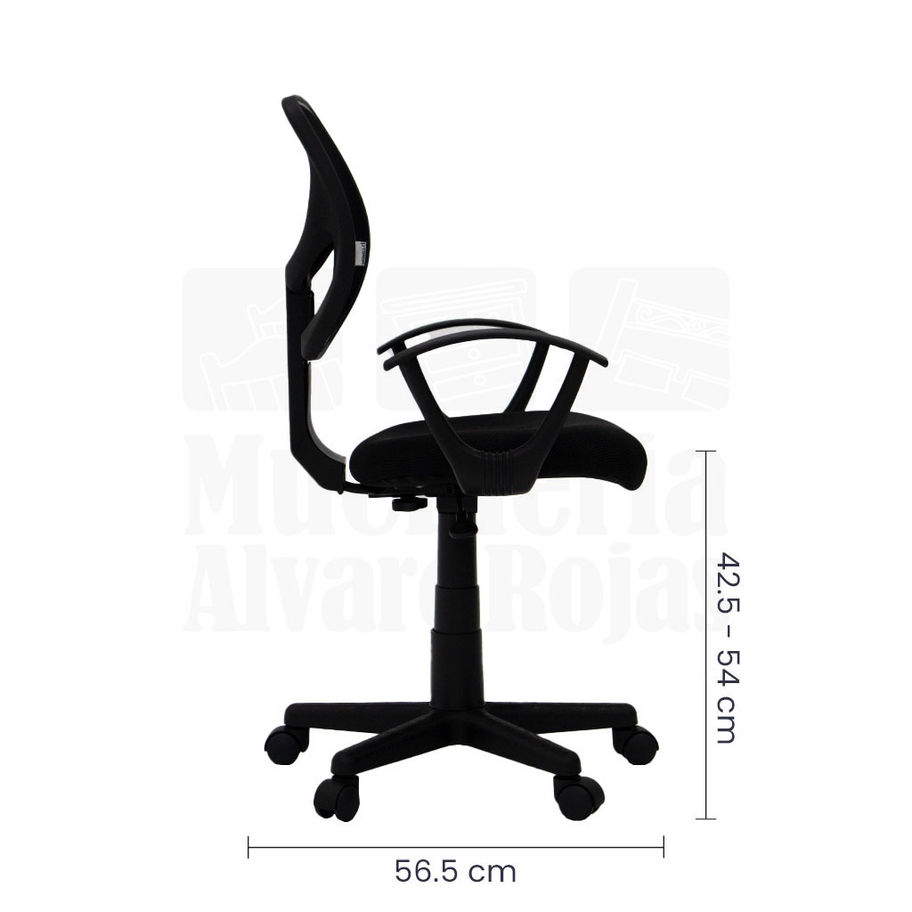 Silla secretarial con diseño ergonómico y respaldo de malla para una mayor ventilación. Ajuste de altura de 42.5 cm a 54 cm, ideal para oficinas y espacios de trabajo. Con un asiento cómodo de 56.5 cm de ancho y estructura resistente, perfecta para largas horas de trabajo. Estilo y funcionalidad para tu oficina.